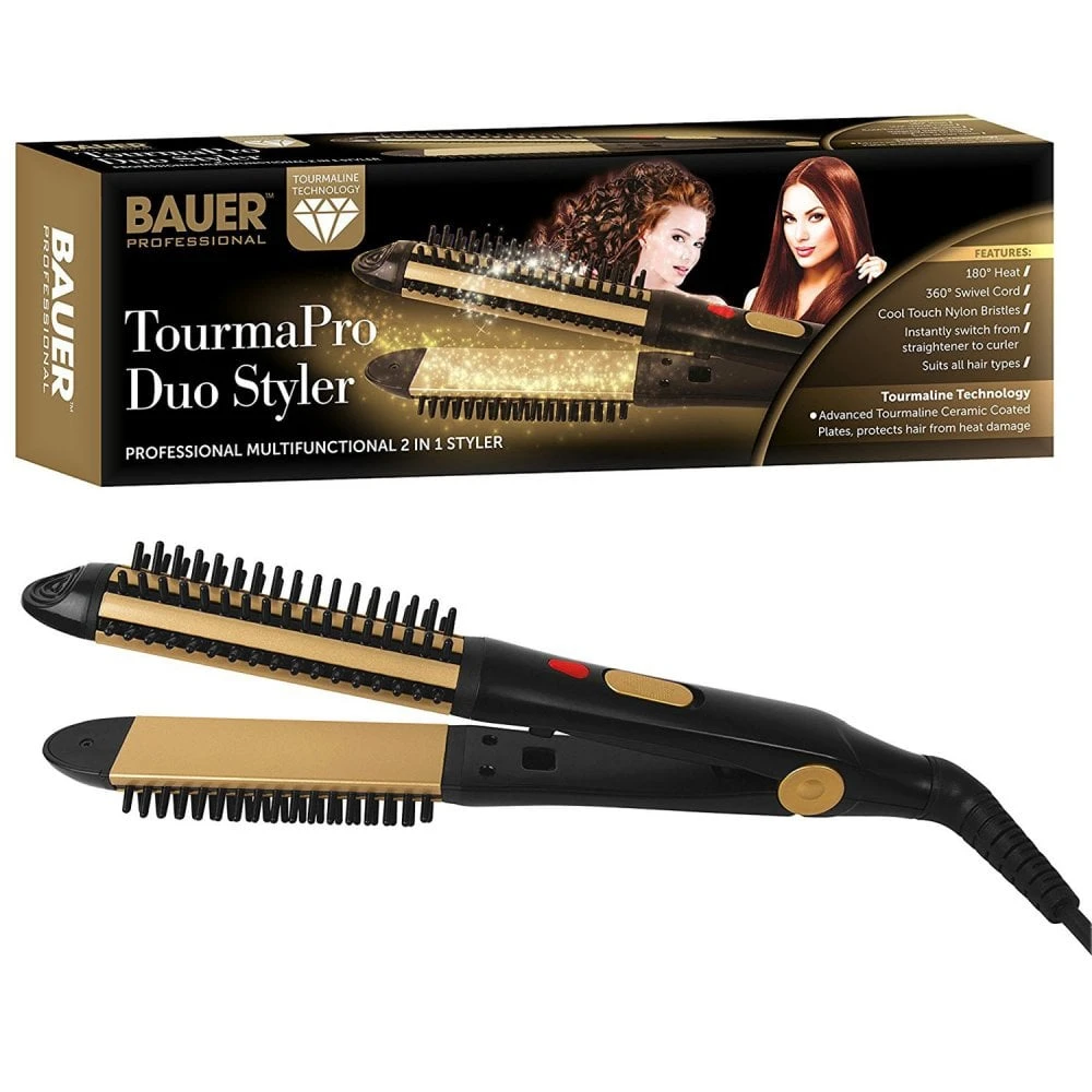 This 2 in 1 hair straightener & curler combines ionic technology with tourmaline ceramic plates which protect and create smoother, stylish and healthier looking hair.