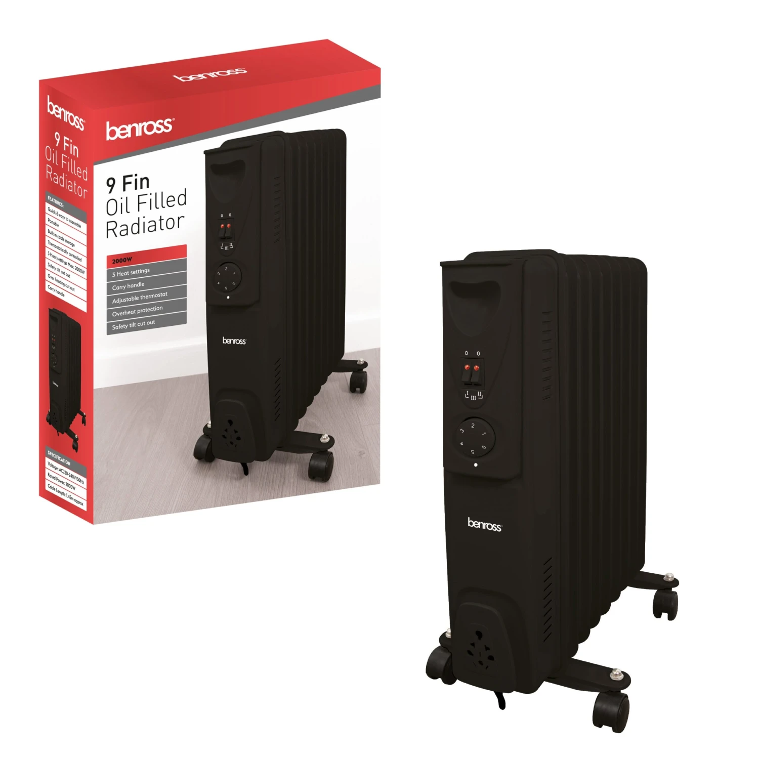 Benross Oil Filled Radiator 9 Fin – 2000w Black
