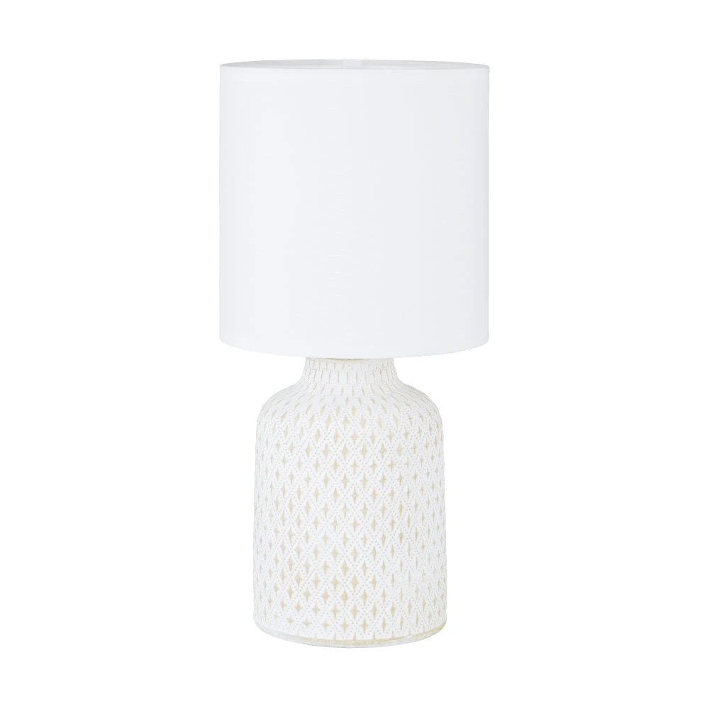 The BELLARIVA table lamp has a curved ceramic base in a creamy white finish in a popular boho design paired with a round lampshade made from white fabric. The homely table lamp blends seamlessly into modern interiors and appeals to anyone who loves detail, patterns or textures. The light can also be switched on and off easily using the in-line switch. The table lamp provides cosy lighting, whether on a bedside table or in the living room, dining room or hallway. The product has an E14 lamp holder and requires 1 x E14 lightbulb, which is not included.