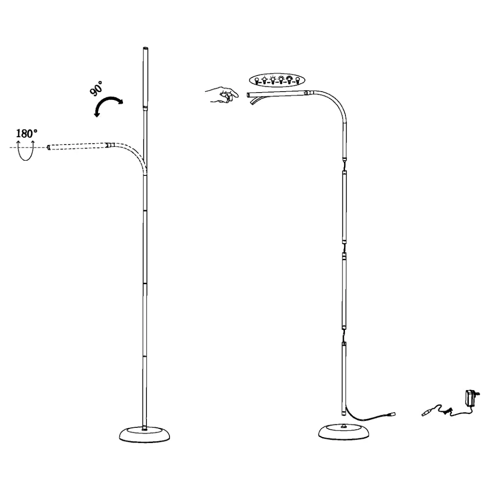 The LAROA is a super sleek floor lamp with a slim design and black plastic finish. The product has integrated LED components with a 4-step dimming function and touch-dimmer capacity. The floor lamp produces a neutral white light when illuminated, which promotes productivity and is great for a reading nook or office space.