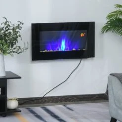 HOMCOM 1850W Flame Effect Electric Free Standing Fireplace W/Fan And Log Burning Stove Heater-Black