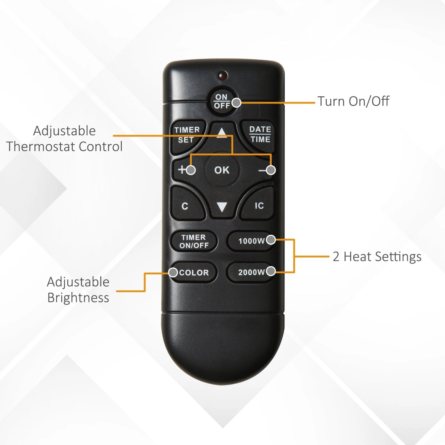 Create beautiful ambience whilst keeping warm with this sleek electric fireplace heater from HOMCOM. With two heat settings, 1000W and 2000W, covering a range of 20-25㎡, it will provide individual warm and comfort in cold winter. Overheat protection ensures that in the unlikely event that the fire overheats, the power will automatically shut off ensuring optimum safety. In addition to the heating function, the patented faux flame effect makes it an eye-catching décor in your living room, bedroom, home office or anywhere you need it. A modern and chic heater, a practical life helper!