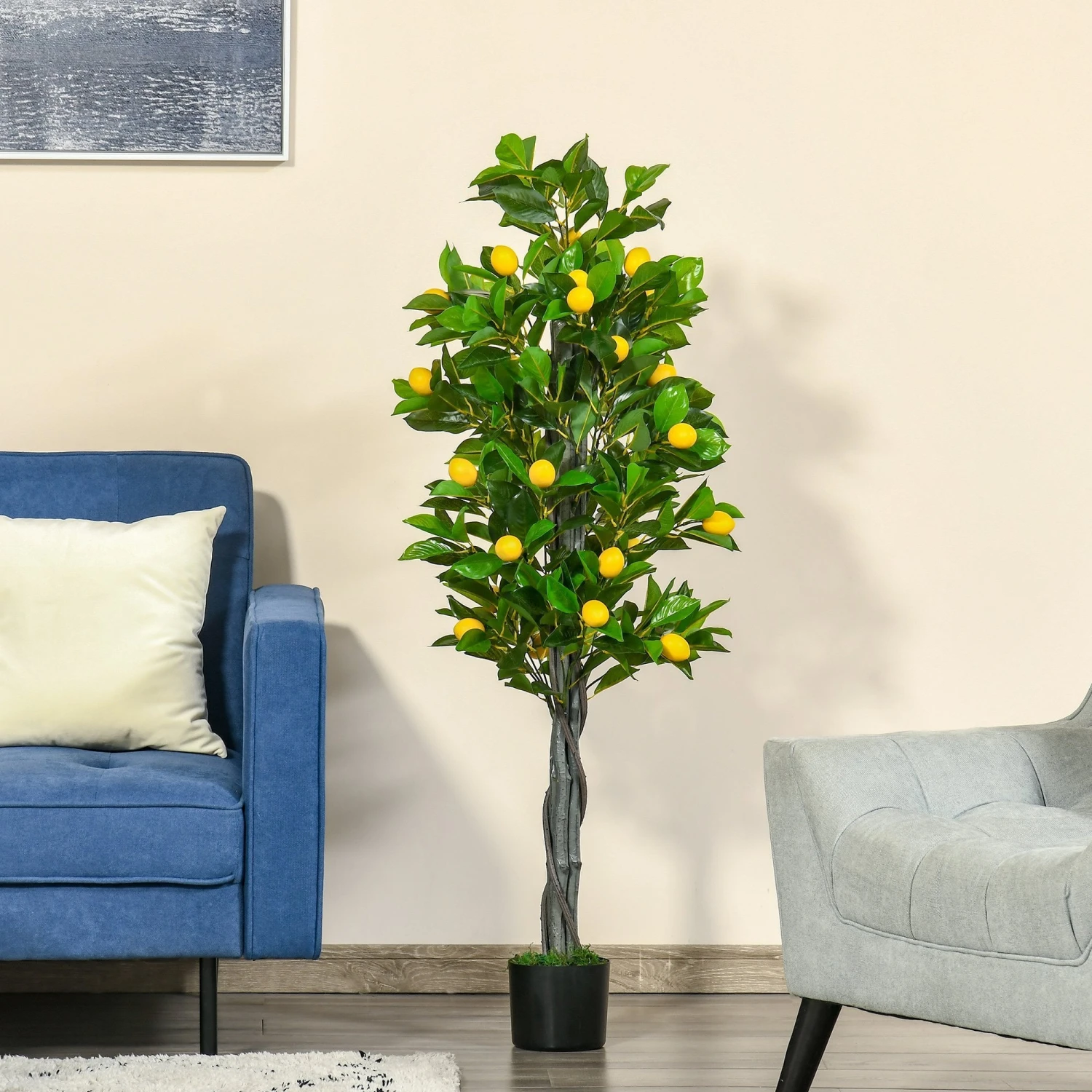 The bright yellow hue of lemons will be forever in your home and outdoors, thanks to this HOMCOM artificial piece. It’s packed with 403 leaves and 39 fruits, giving you lots to look at, with the vinyl finish of the PEVA ensuring a beautiful high gloss finish. It comes with a black pot filled with cement, so it stands steady; it won’t be knocked over too easily. And to keep clean? Simply wipe when needed.