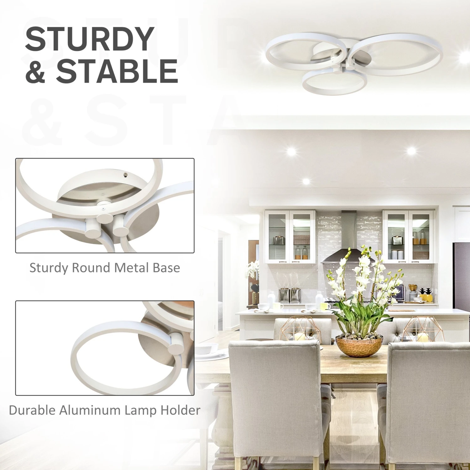 This is a fashionable ceiling light provided by HOMCOM. The bright light ensures its applicability for any scene, such as living room, dining room, bedroom, kitchen, office, lounge, balcony, entrance, corridor, etc. Durable and designed light belts save the hassle of changing bulbs and is ready to bring cool styling and full illumination to your home