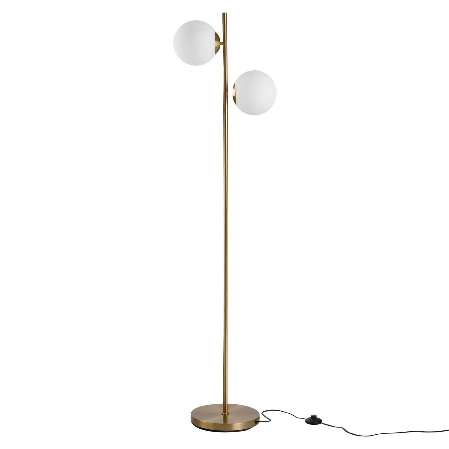 Say hello to cool, unconventional style with this floor lamp from HOMCOM. Standing tall at 165cm, a slimline metal pole forms the structure, making sure this piece is up to being used for the everyday. Two large glass bulbs lamp heads are placed opposite each other and below, which creates a fuller lighting radius, in a matte white finish for a fresh appeal. A thick base provides a central point of balance, with the switch on the cable for easy operation.