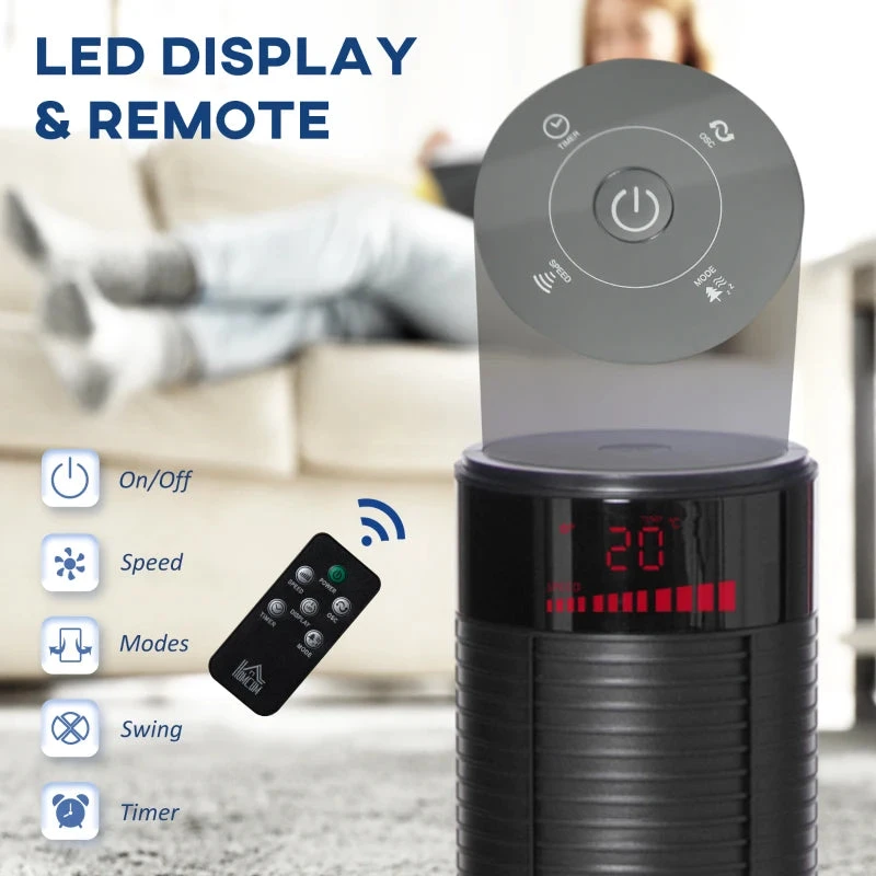 Keep your home delightfully cool without sacrificing on style, thanks to this HOMCOM tower fan. It features three speed settings and four wind modes, you can easily change them with remote control or LCD screen, with oscillating movement pumping air over a greater area to keep the whole room cool. 12-hour timer allows you to set a specific time for the standing fan to stop – ideal for using at night. Our oscillating fan is a must-have as the temperatures raise for the seasons ahead.