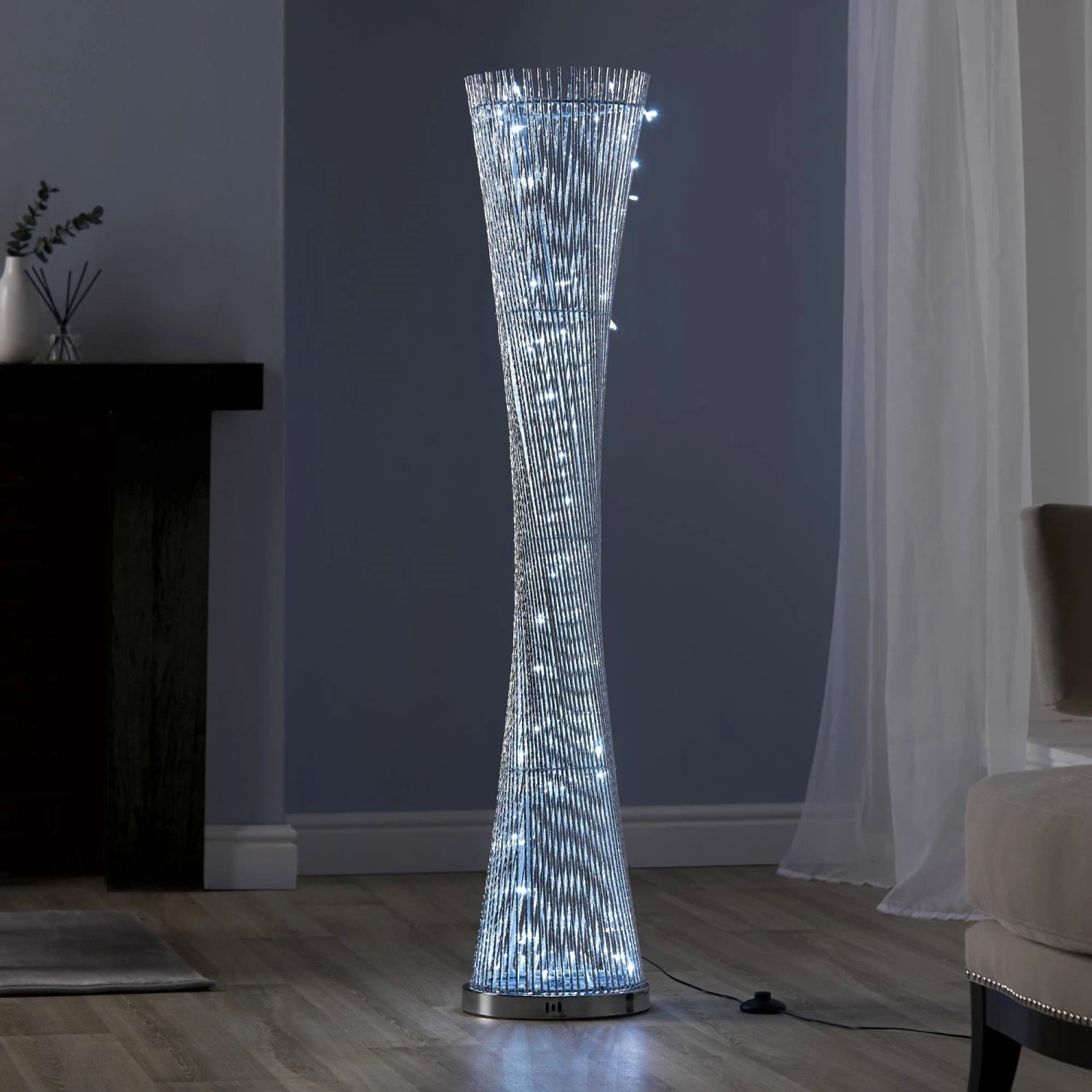 This modern Aluminium Spiral floor lamp features a twisted circular style design and is illuminated by LED lights from top to bottom. This spiral floor light is a standout piece for any home and once illuminated will add a sense of style and sparkle to any home.