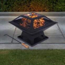 Outsunny Stainless Steel Outdoor Garden Pyramid Patio Heater With Wheels And Rain Cover – Silver