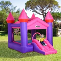 Outsunny Kids Bounce Castle House Inflatable Trampoline Slide 2 In 1 With Inflator For Kids Age 3-12