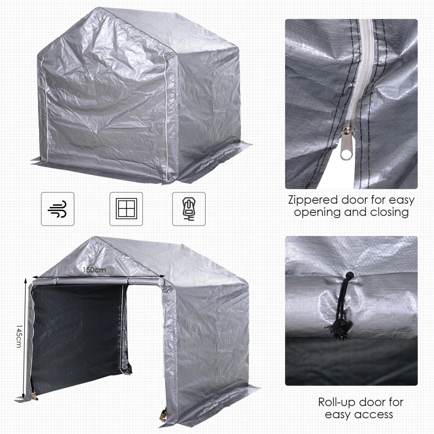 - Spacious 2x2m design, ideal for your car, bike or other pieces to be kept dry.