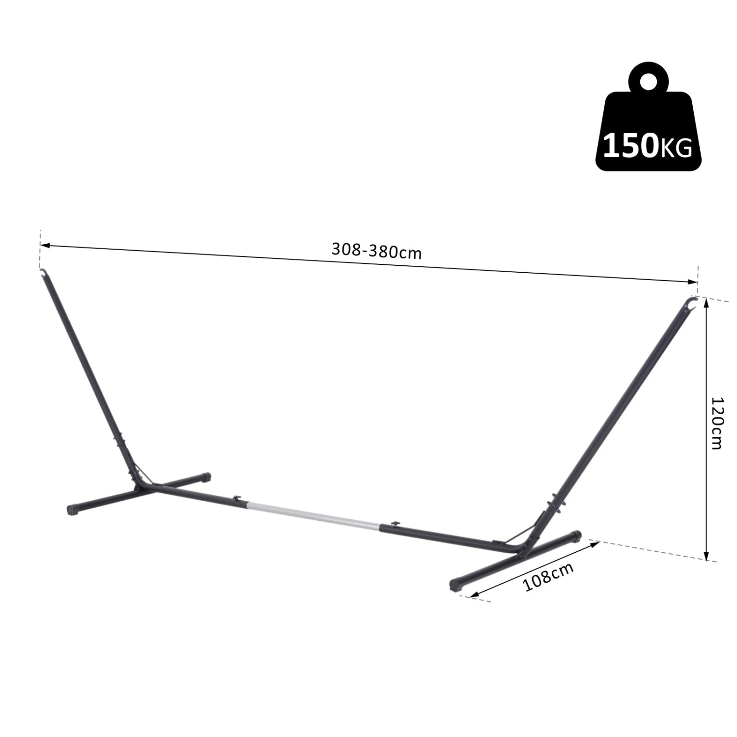 Hang your hammock anywhere with this Outsunny stand. Crafted from powder-coated steel for strength and durability, it adjusts from 308-380cm to fit all hammocks. Safe, stable, and weather-resistant, perfect for relaxing outdoors all year.