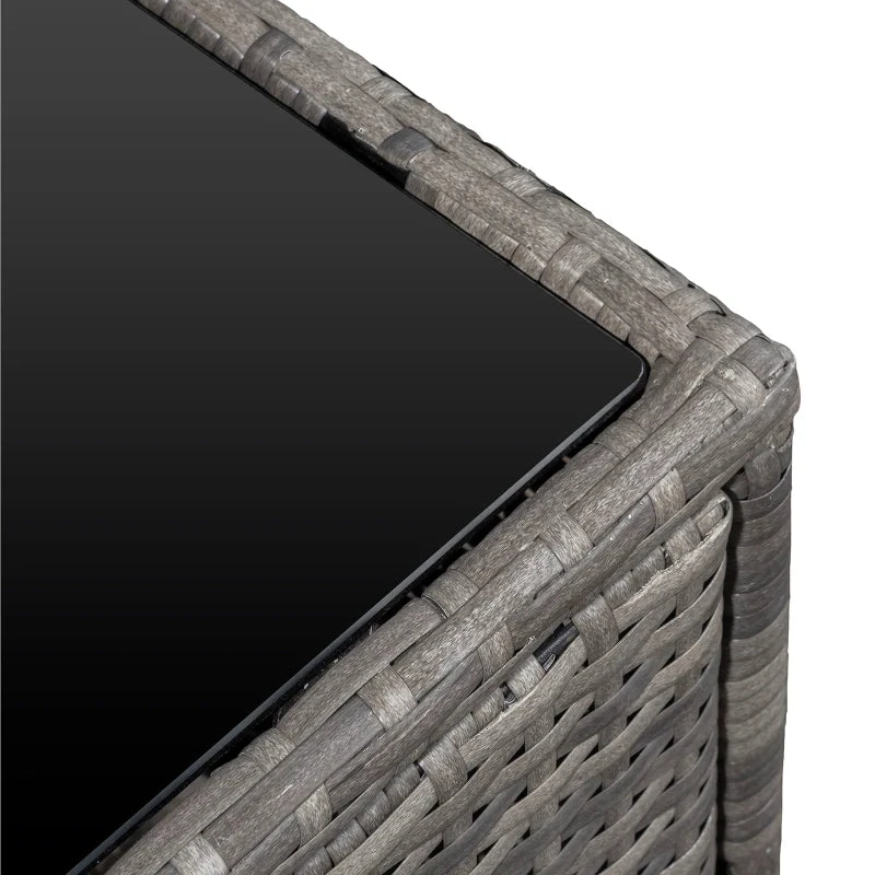 - Stylish outdoor rattan sofa set consisting of four seats, two corner seats, a corner table and a coffee table with a sleek tempered glass top