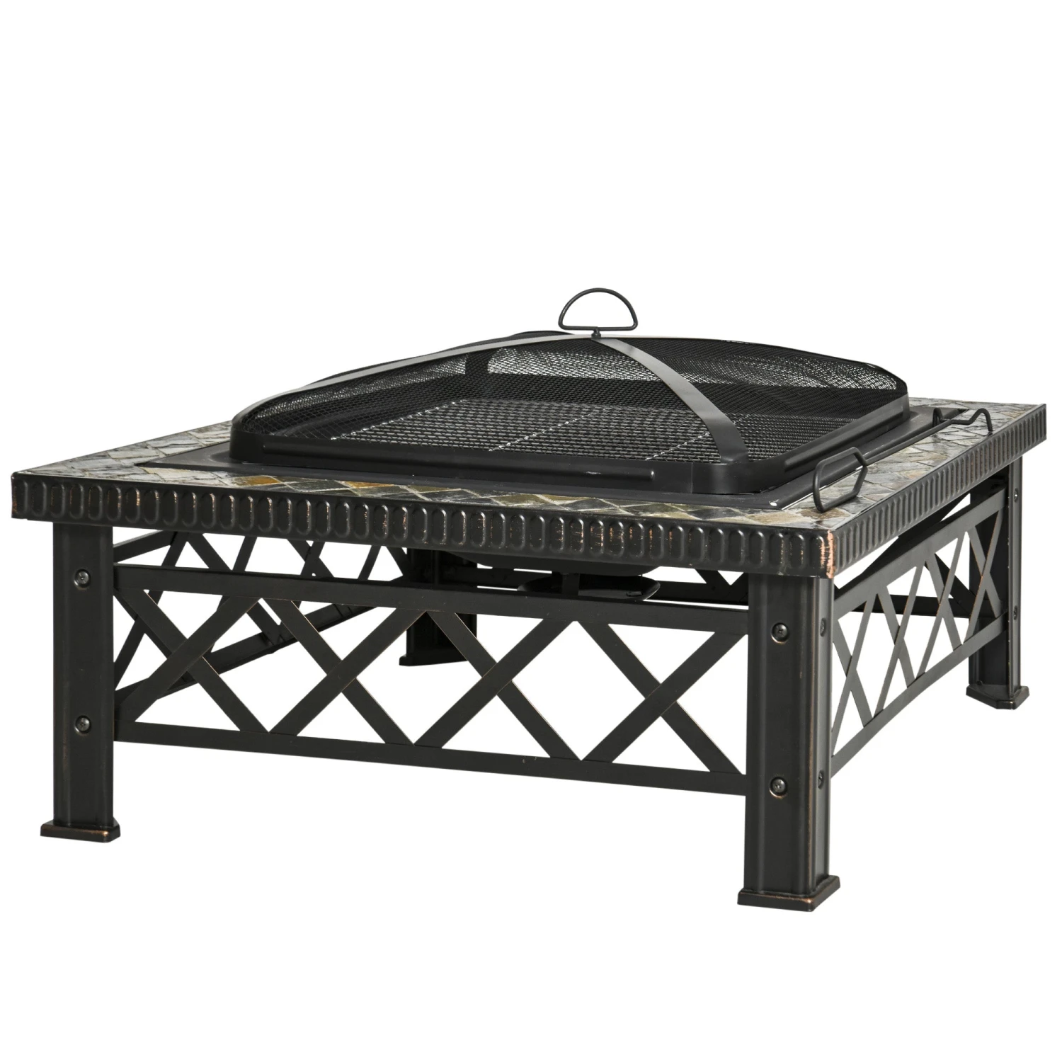Features: – Practical wood burning metal fire pit create a warm backyard gathering place. – Multifunctional design for BBQ, warmth or placing cooling drinks. – Elevated base so heat doesn’t touch the ground for safety. – Top grate for holding food safely and protecting you from direct flames. – 500 temperature-resistant structure meanings better heating and quicker cooking. – Mesh lid included, creates a smoked effect on food when left on. – Poker included for safety, assembly required.
