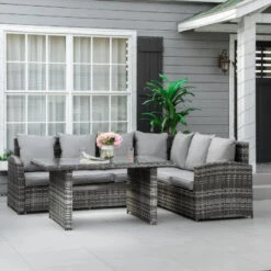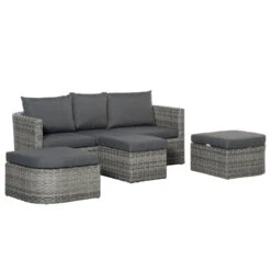 Outsunny Rattan Sofa Set With Coffee Table & Footstools – Grey