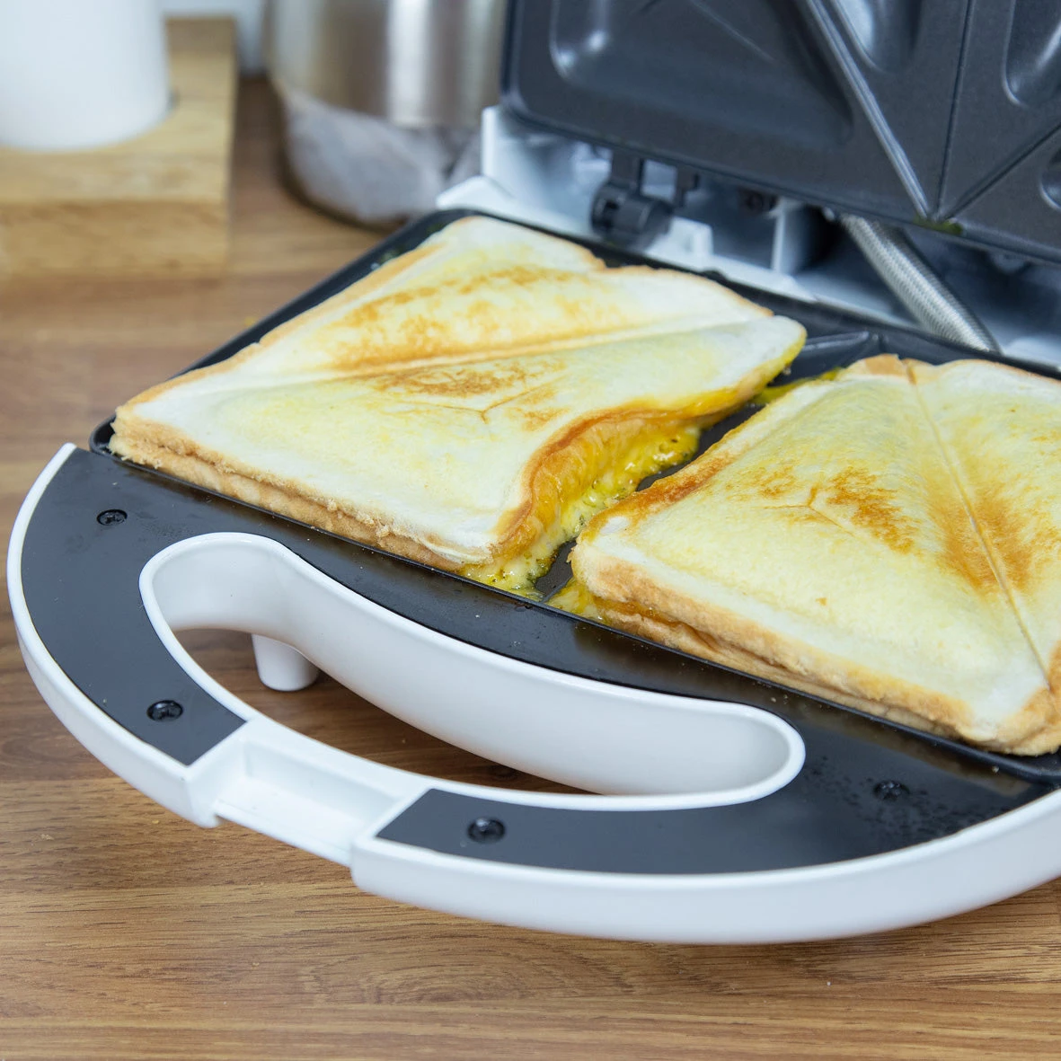 This contemporary sandwich toaster with non-stick plated is perfect for fast and tasty toasties. The hotplates are easy to clean