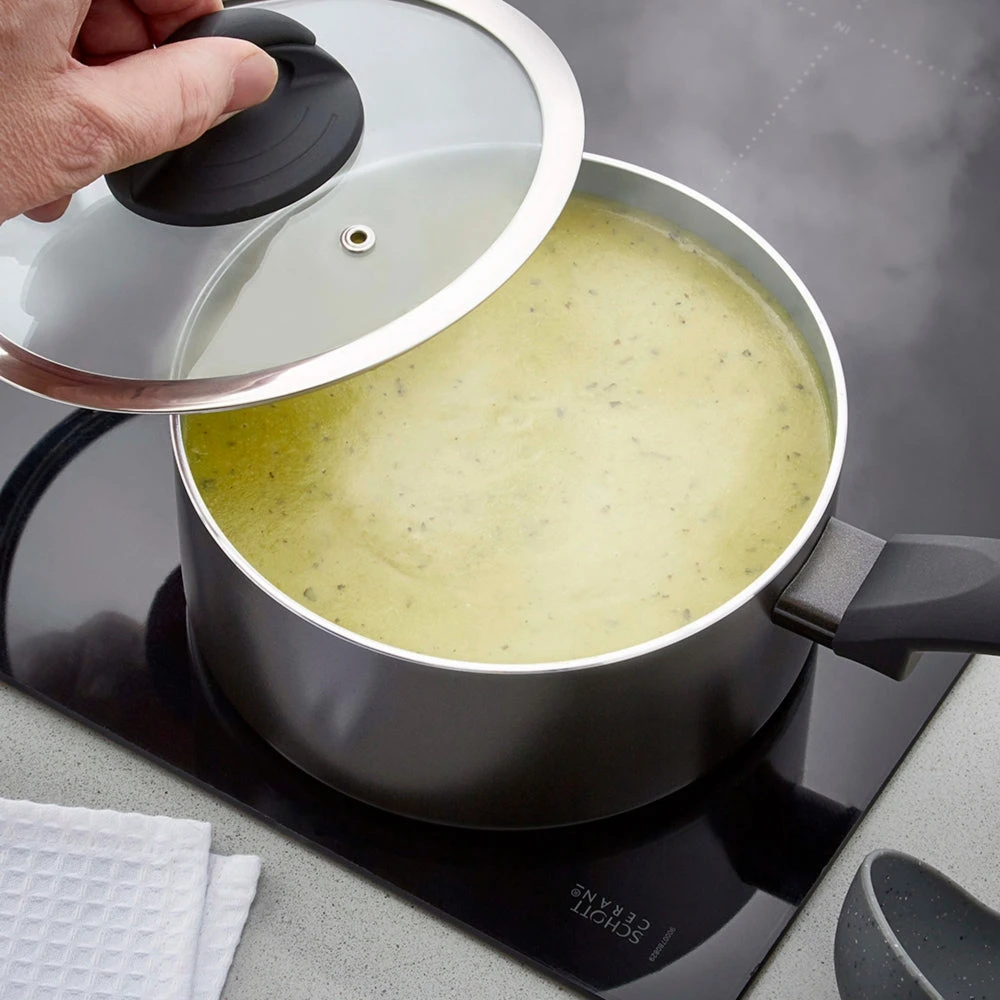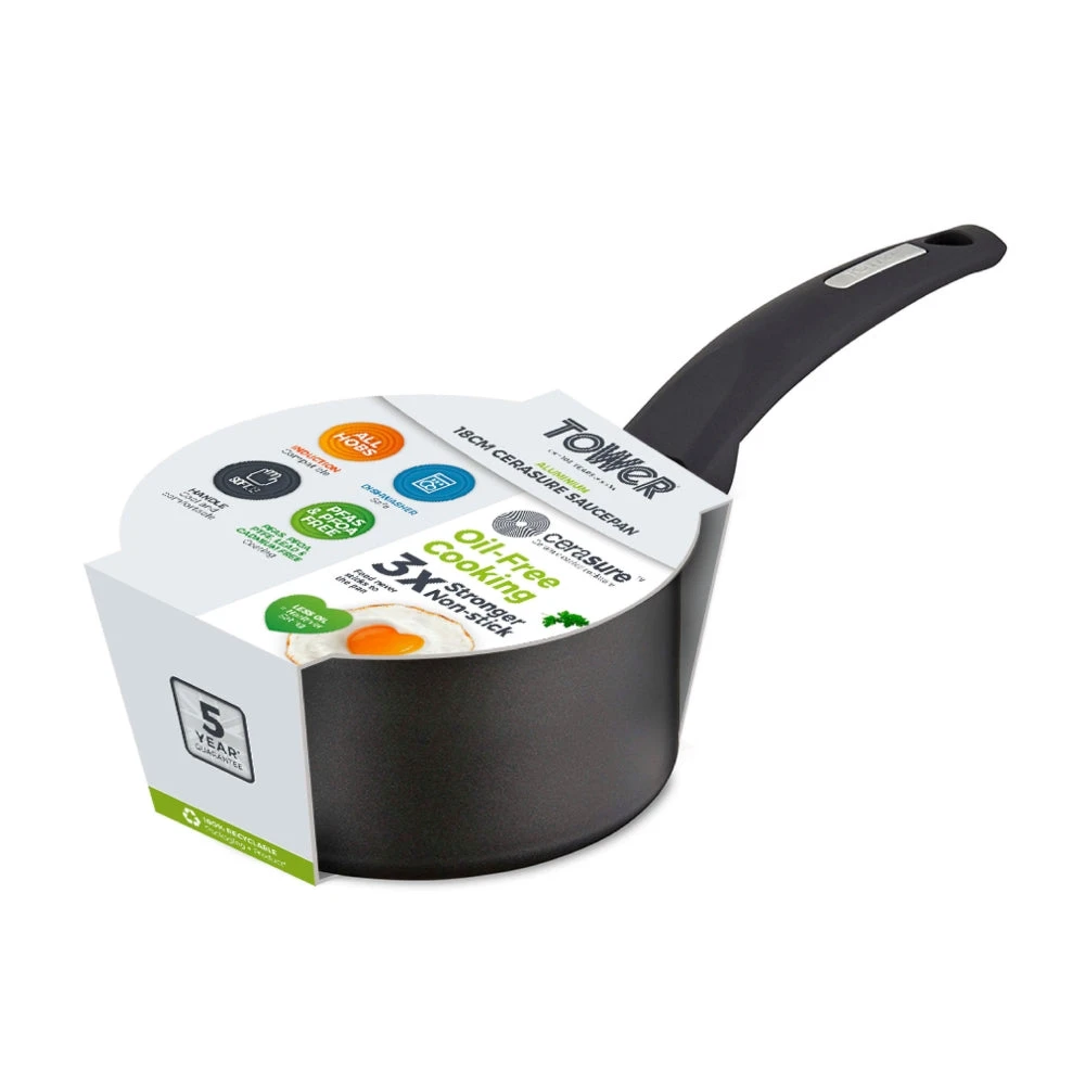 This Cerasure saucepan set by Tower is the ideal choice for toxin-free, less-oil cooking, perfect for any chef. Constructed from high quality aluminium, it provides versatile cooking with all levels of cooks able to achieve delicious meals. The superior Cerasure ceramic non-stick coating is 3x stronger than others, needing minimal oil for a healthier alternative, and food cannot stick to the pan. The set is dishwasher safe, although hand-washing is recommended to maintain its finish, and is suitable for induction hobs too. The Cerasure ceramic coating is PFAS, PFAO, PTFE, lead and cadmium-free, making it great for any level of cook. Its bonded steel base heats evenly with no hot spots, guaranteeing well-cooked food. Additionally, this product and its packaging are 100% recyclable, looking after the environment. The softtex handle with ergonomic, phenolic design remains cool to the touch for a comfortable grip.